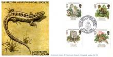 Native populations of the sand lizard (Lacerta agilis) have been lost from the English counties of Berkshire, Cheshire, Cornwall, Devon, East Sussex, Hampshire, Kent, West Sussex and Wiltshire, and this species also became extinct in Wales. Sand lizards now only occur in significant numbers on the lowland heathlands (and one dune system) of Dorset, in southern England, which now support over 90% of the UK population. Small numbers of sand lizards also survive on heathlands in Surrey, about 100 km northeast of Dorset, plus the coastal dunes of Merseyside in northwest England. There were estimated to be around 6500 adult lizards surviving in the United Kingdom in 1997, with all but a few hundred animals occurring on Dorset heathland.